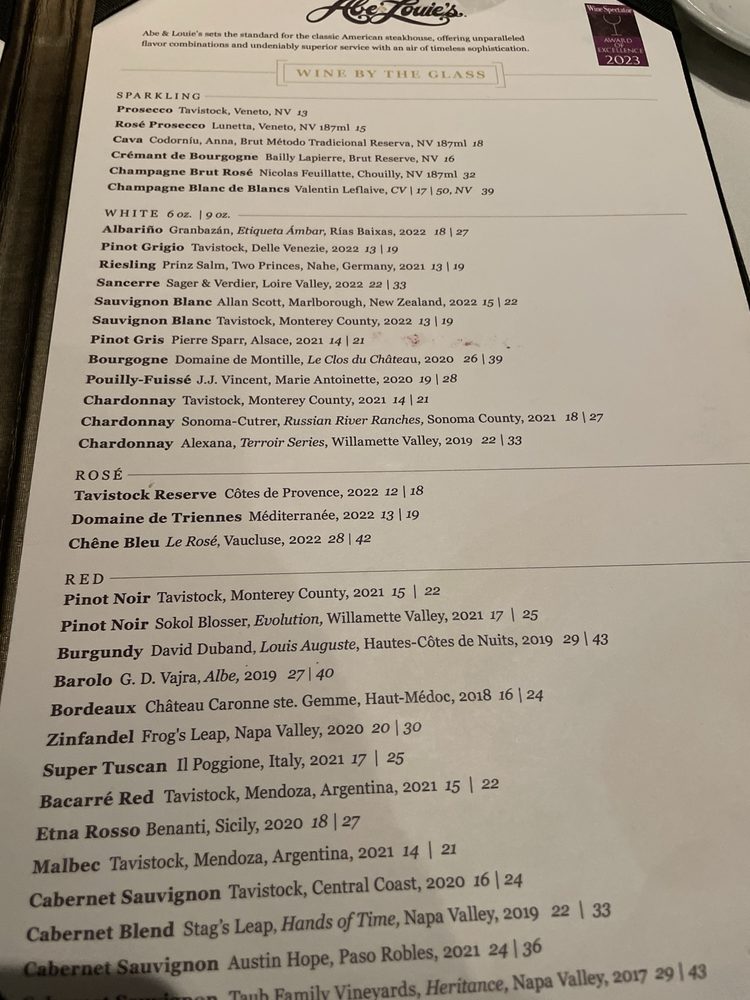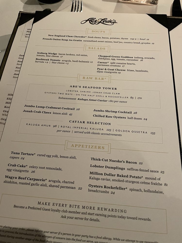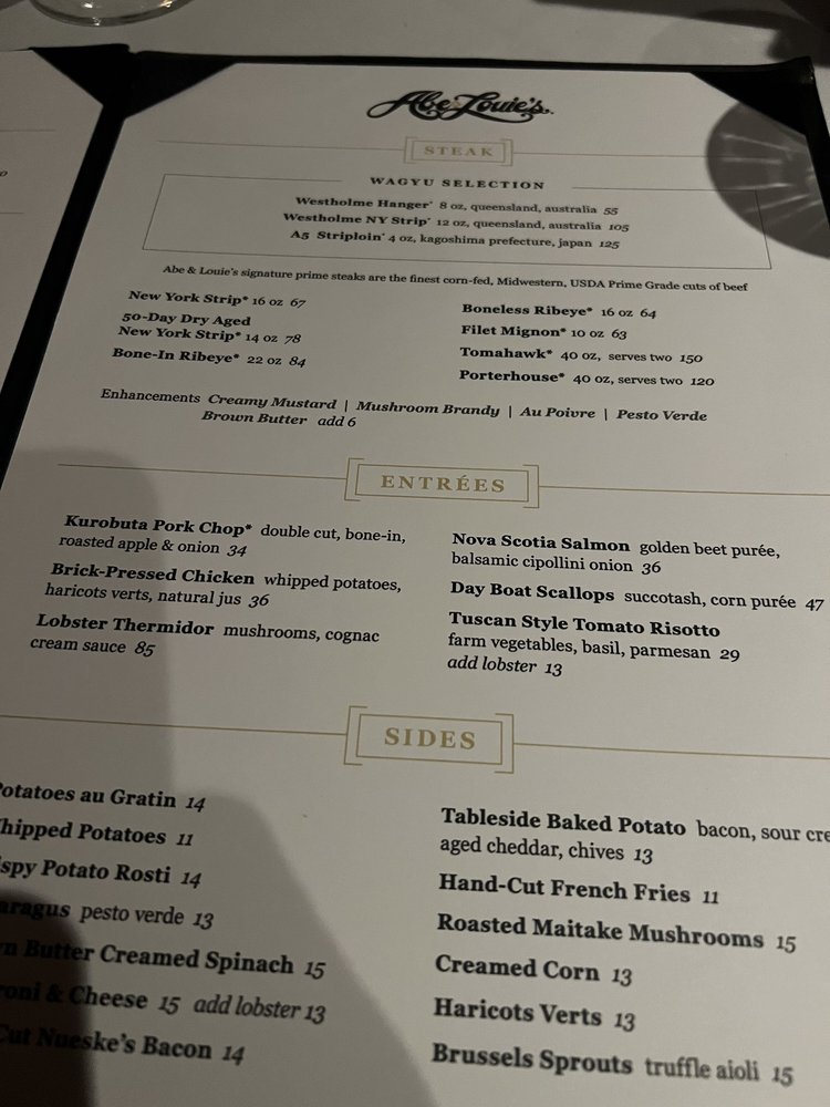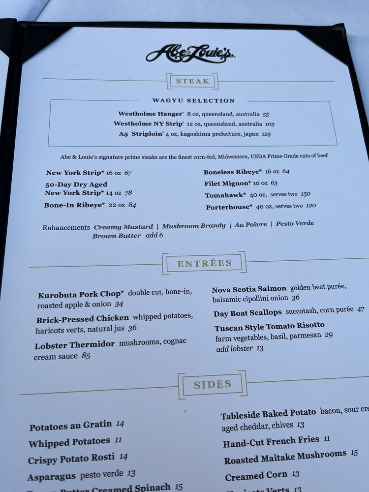 Abe & Louie's Menu (2025 Update)